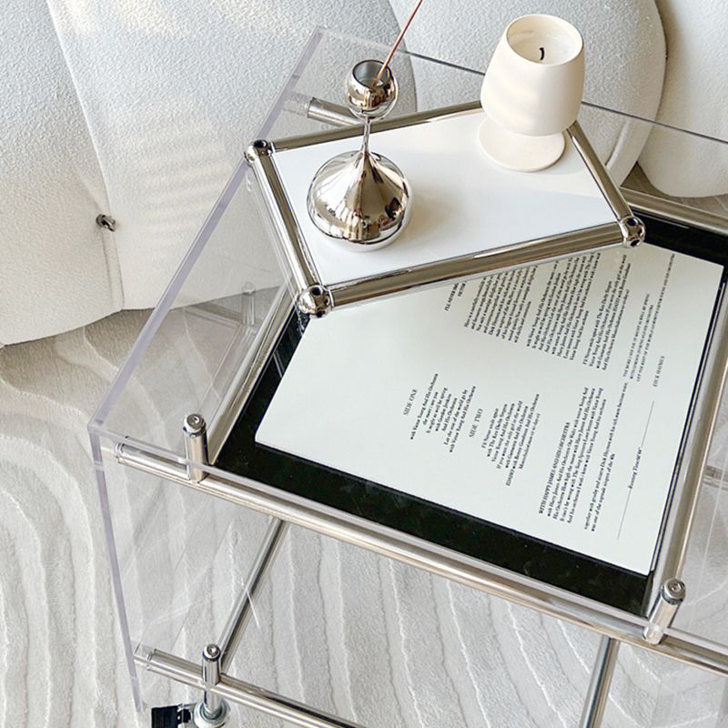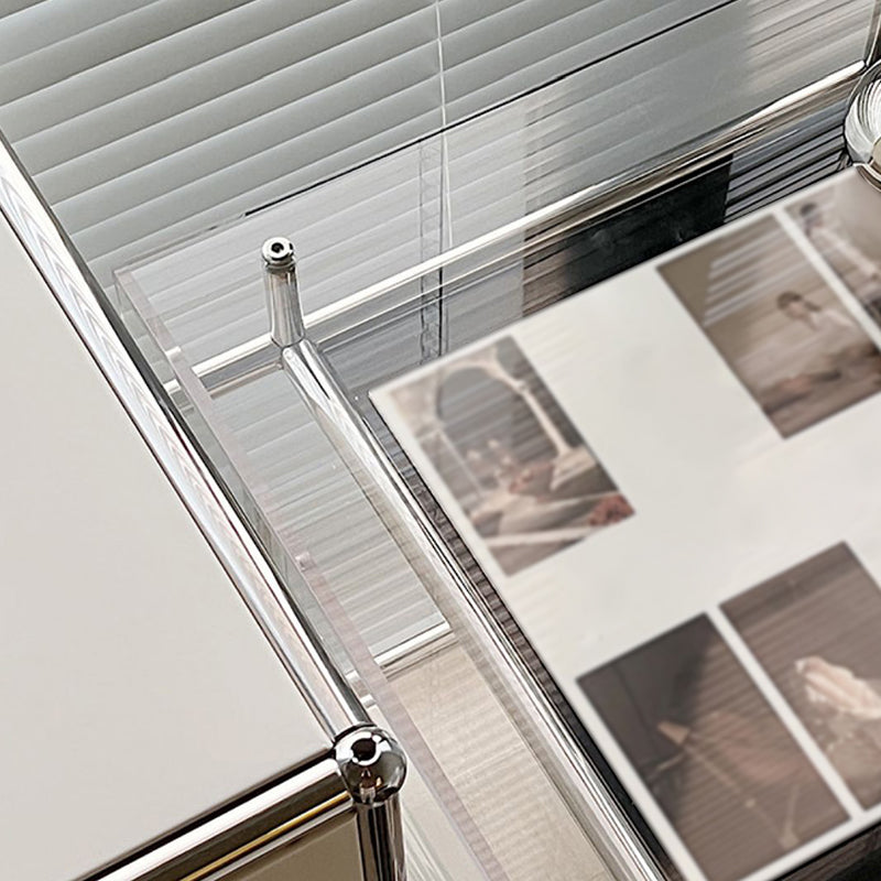 Contemporary Plastic Rectangular End Table Double Tier Corner Table with Storage