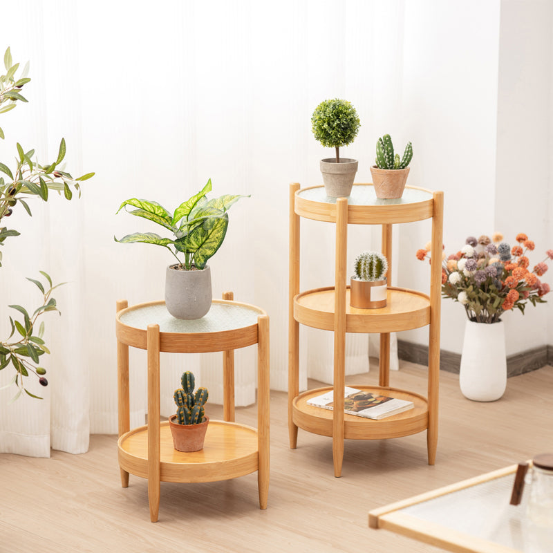 French Country Side Table Wood and Glass Round Accent Side Table