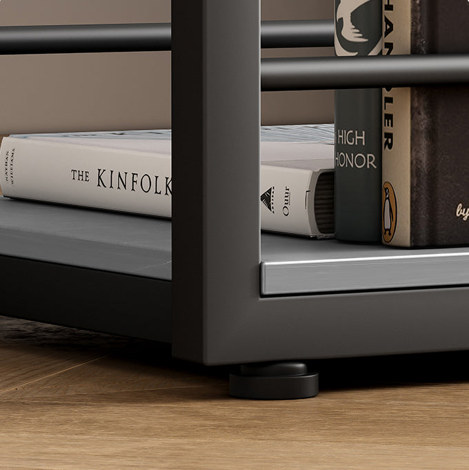 Industrial Rectangle Stone Pub Bar Table Indoor Black Iron Bar Dining Table with Shelf