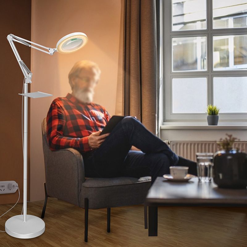 Lámpara de lectura de lupa lámpara de lectura nórdica LED blanco de pie con brazo oscilante
