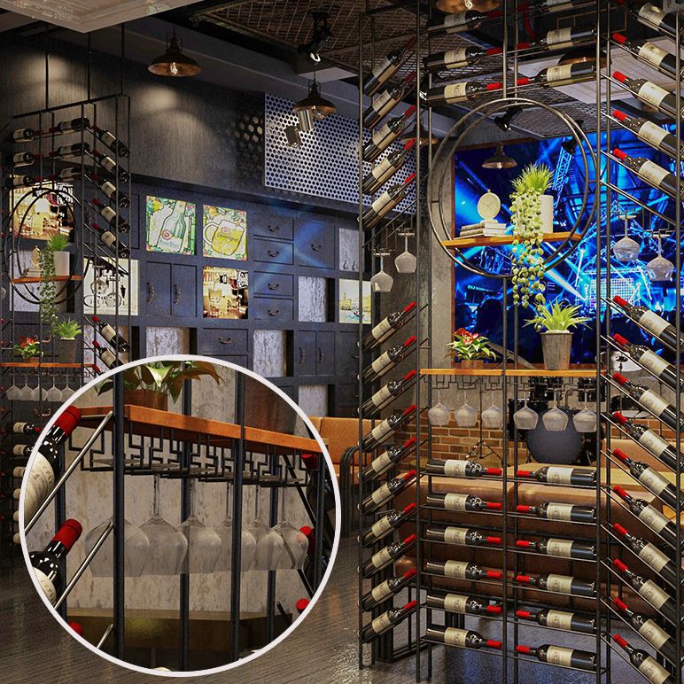 Metal Floor Bottle Wine Rack Modern Black Wine Holder with Shelf