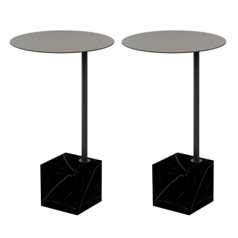 Metal Round Top Side Table 23.6" Tall Marble Pedestal End Table
