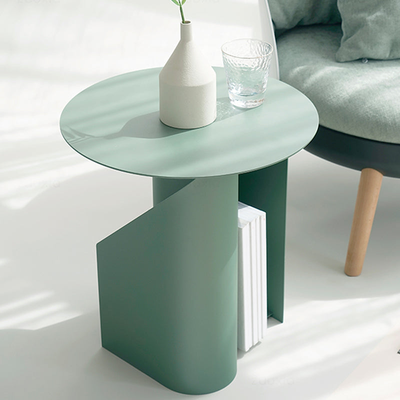 Mid-Century 17.7-inch Metal Round Top Side Table Iron Abstract End Table