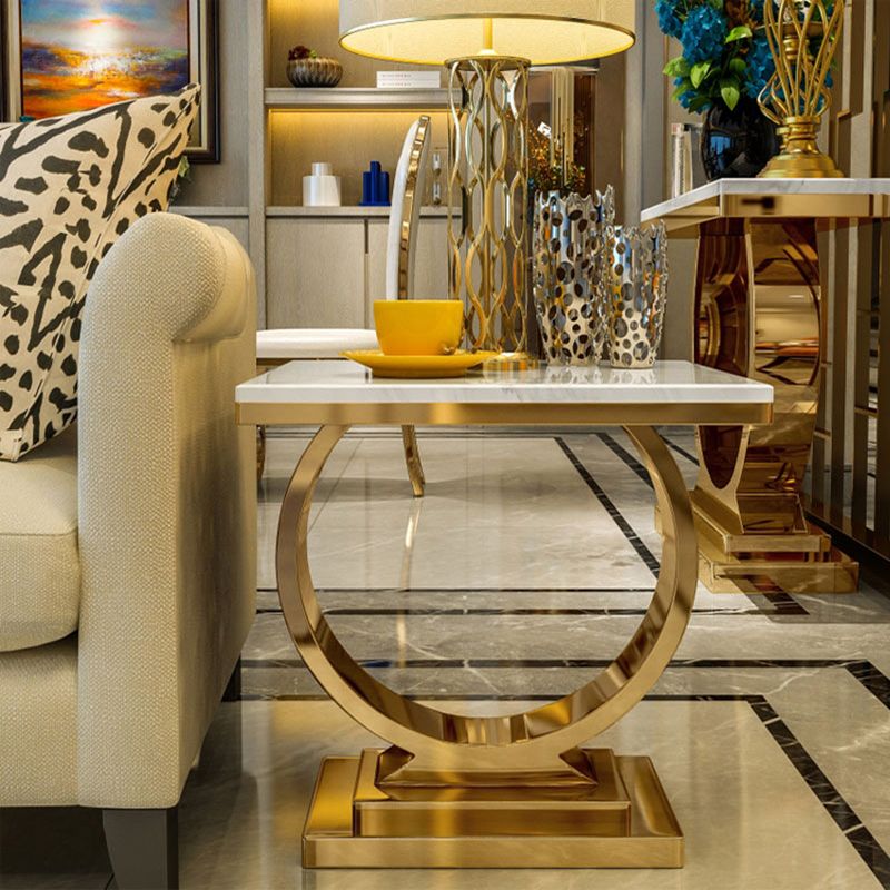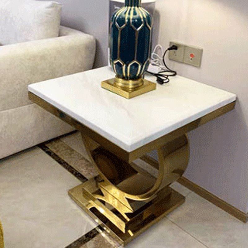 Mid-Century Modern Sofa End Table Abstract Stone Top End Table for Living Room