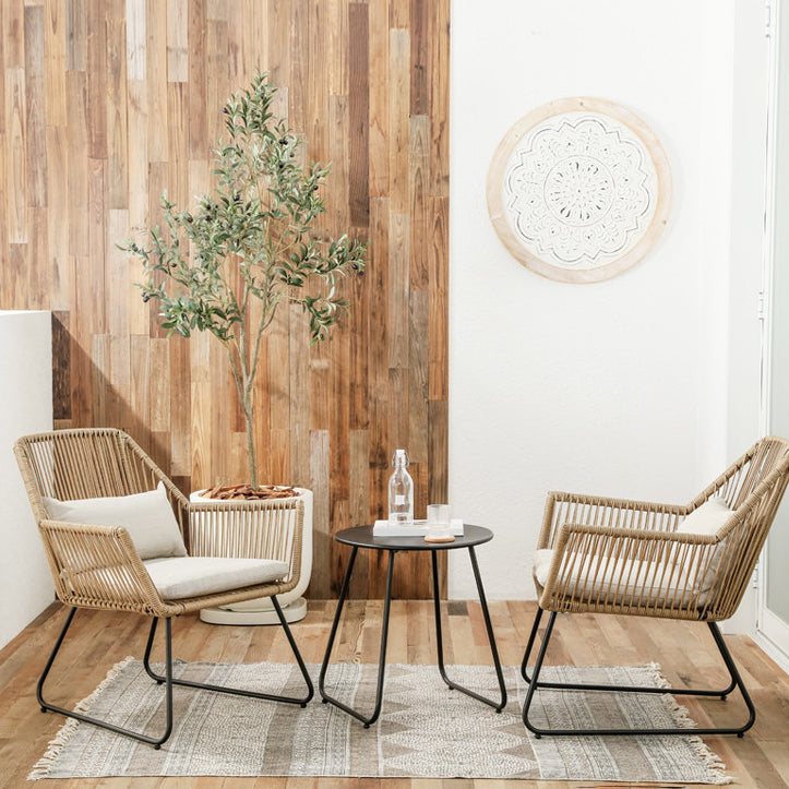 Modern Style Bistro Set Round Top Metal 3 Pieces Bistro Table Set
