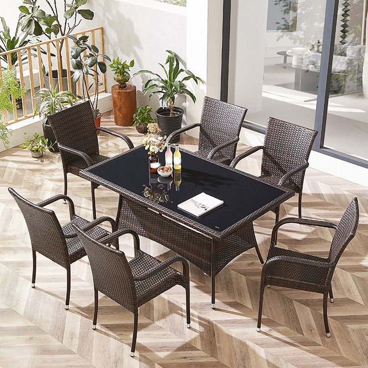 Modern Style Dining Set Glass Top 5/7 Pieces Water Resistant Dining Set
