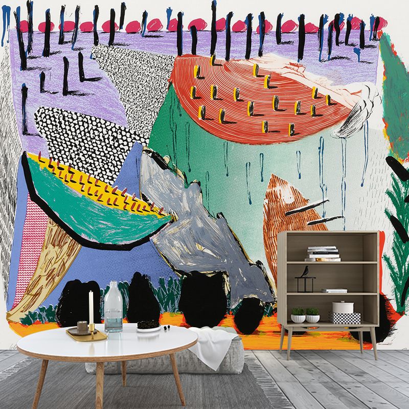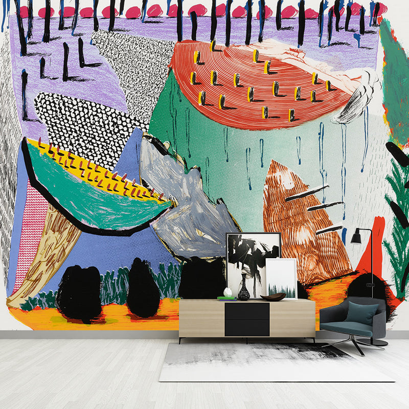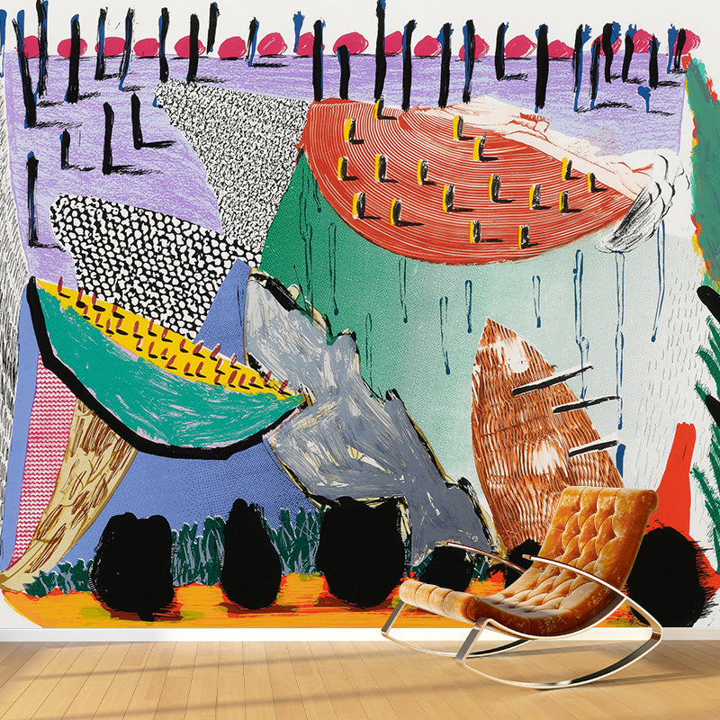 Orange-Purple Art Wall Murals Large Size David Hockney Abstract Painting Wall Decor for Home