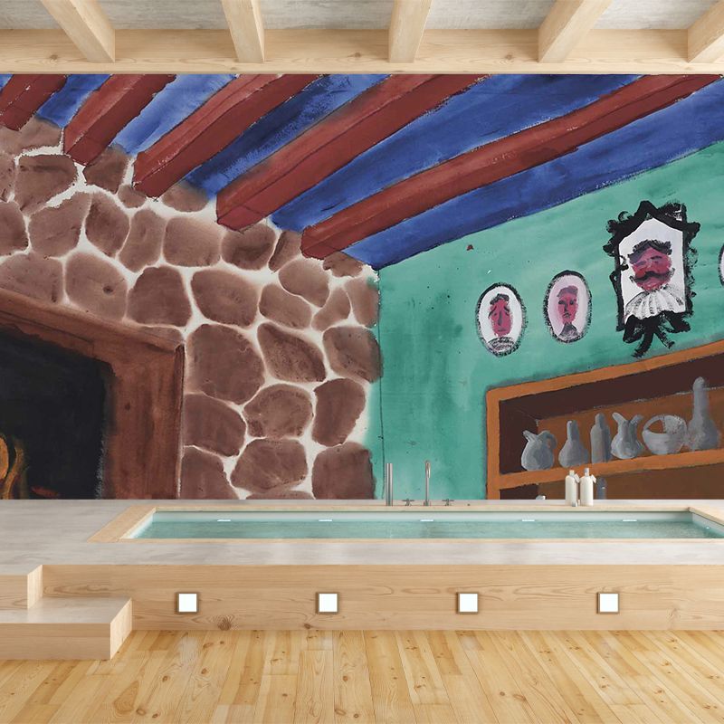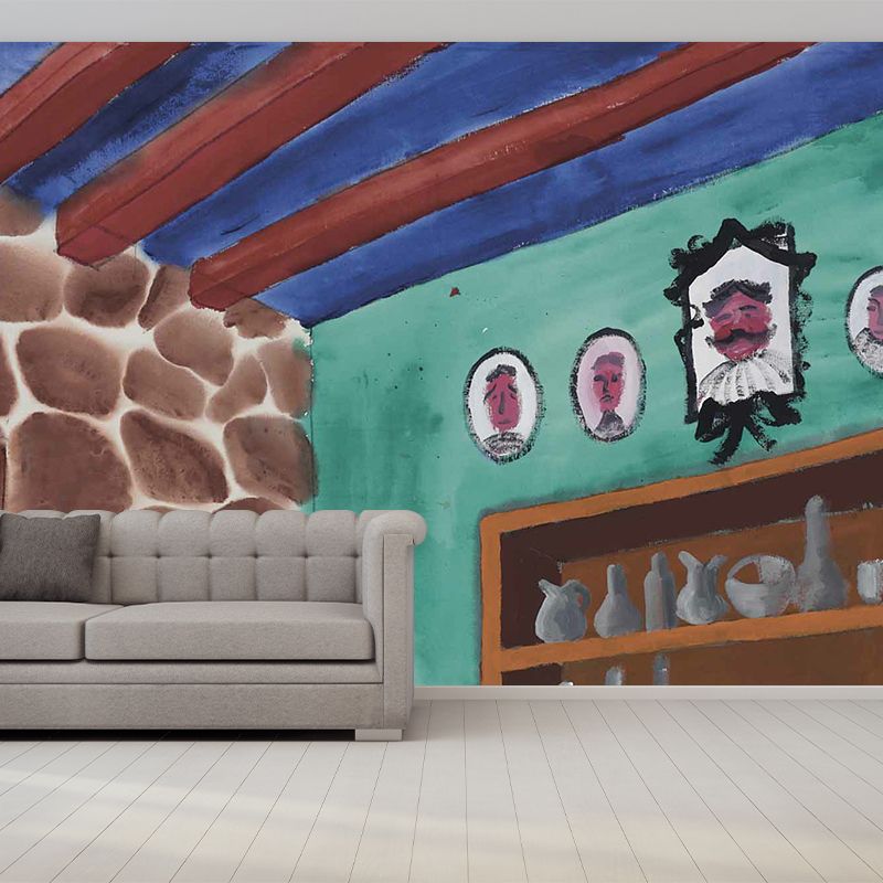 Painting of Living Room Mural in Green-Coffee Art Deco Wall Covering for Accent Wall