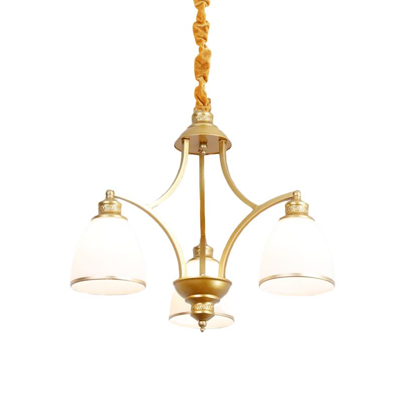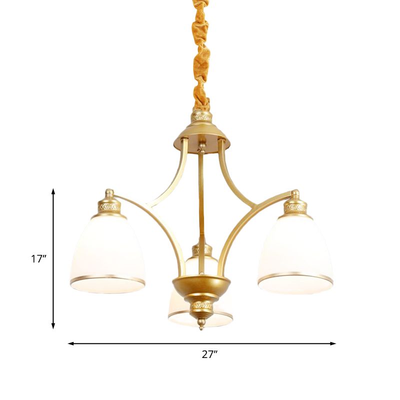 Tazón lámpara de lámpara de vidrio marfil colonial 3/5/8 bulbos sala de estar colgante de iluminación en oro
