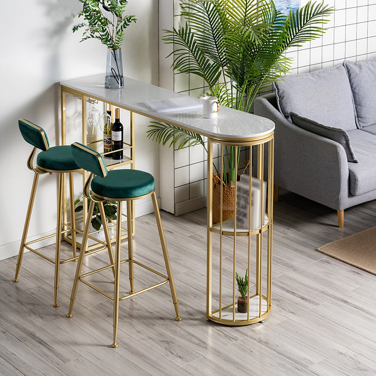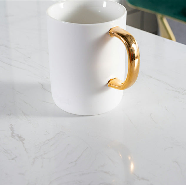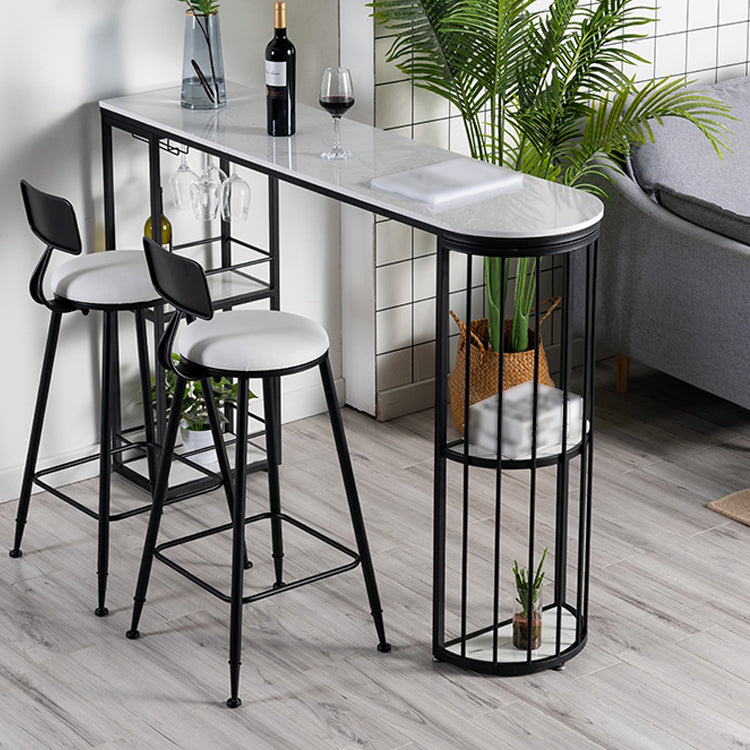 White and Black Glam Style Table in Faux Marble and Metal Coffe Shop Bar Table