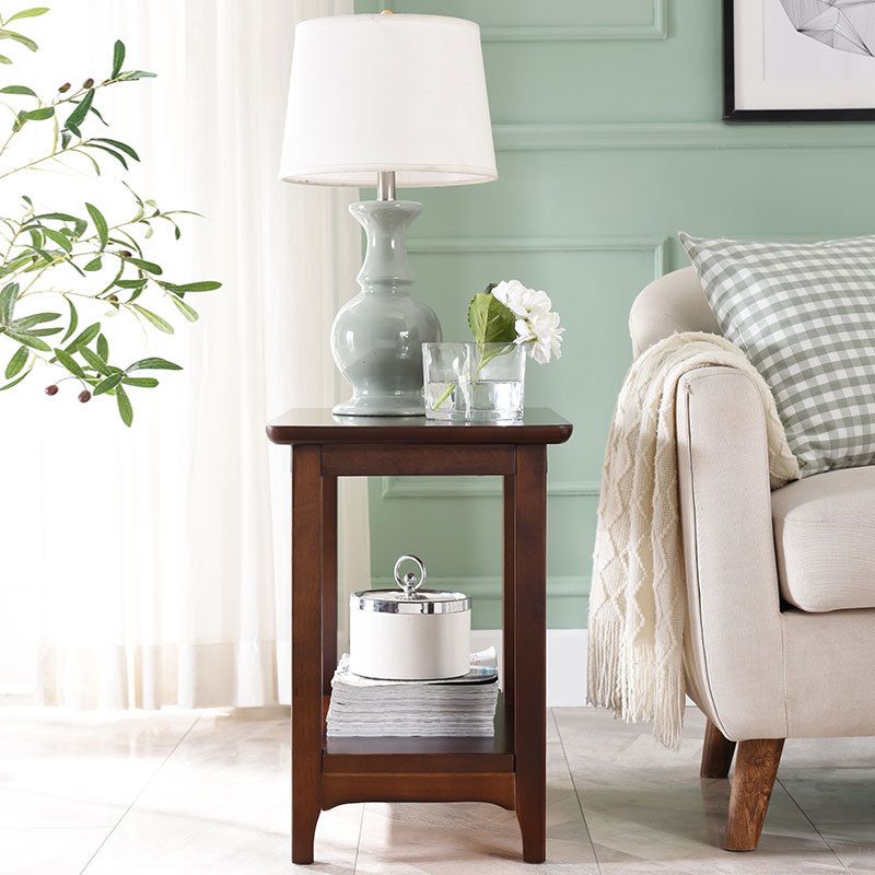 Wood Scandinavian Rectangular 4 Legs Side Table with Storage Shelf
