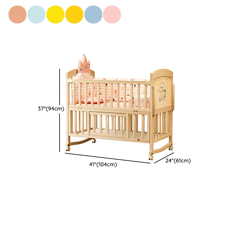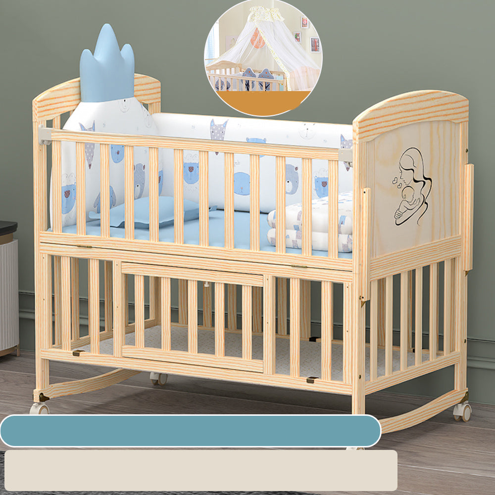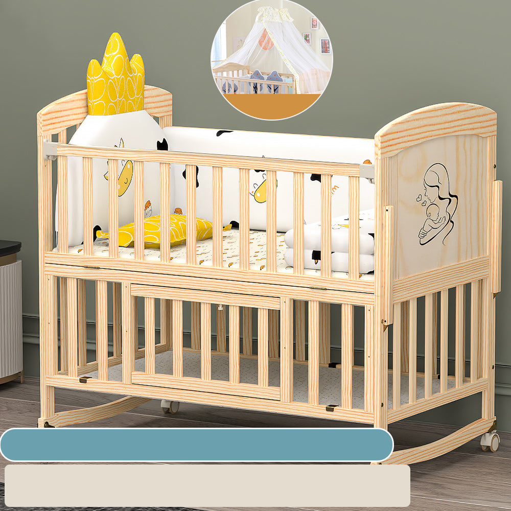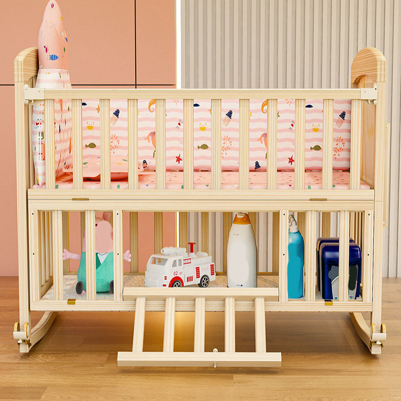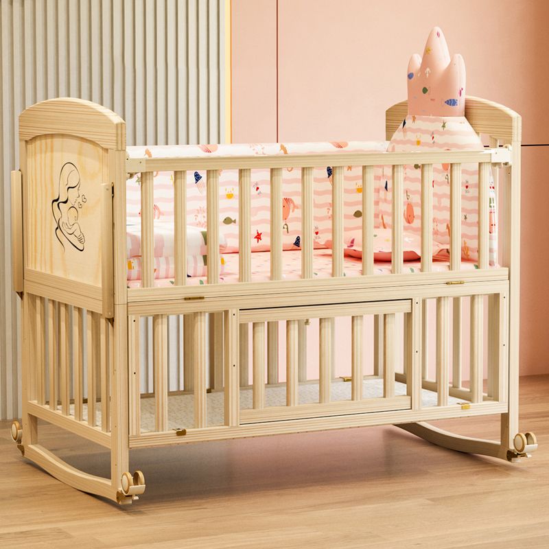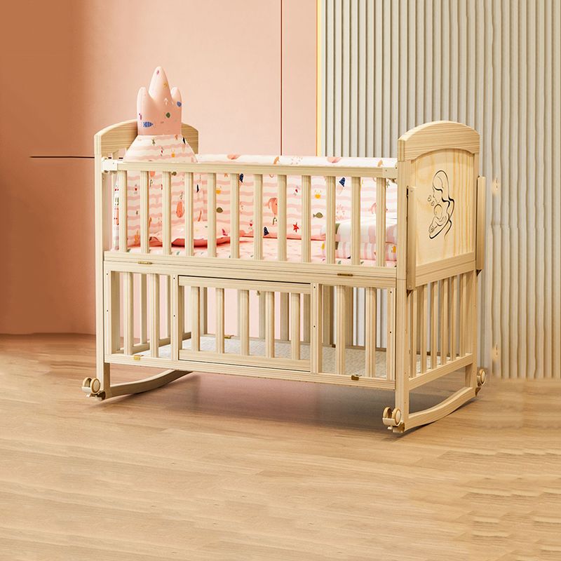 Wooden Modern Nursery Bed Wheels Arched Baby Crib with Storage