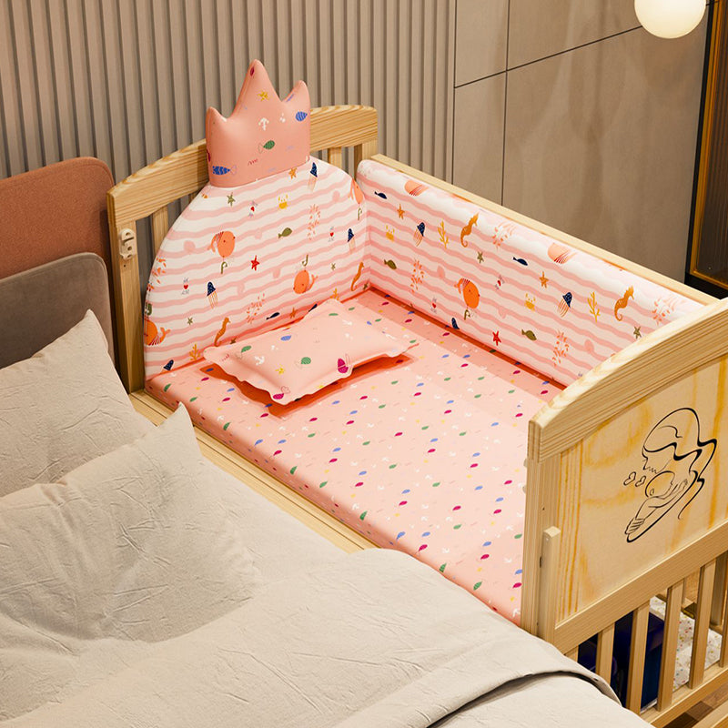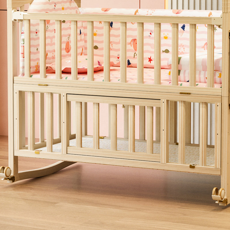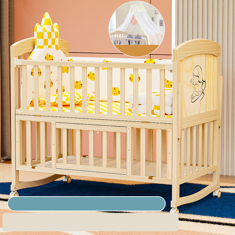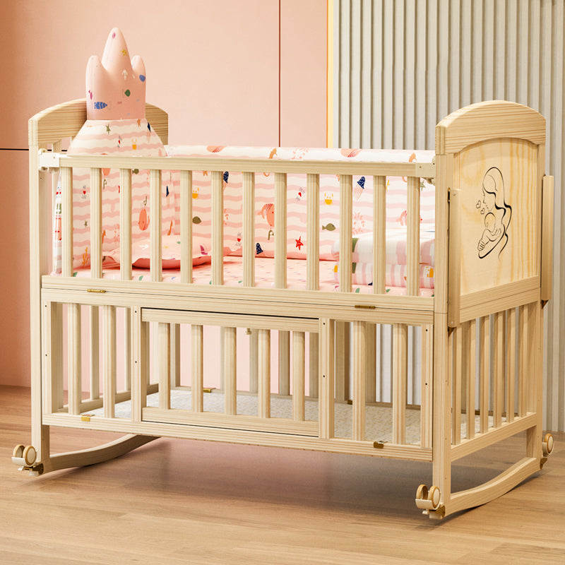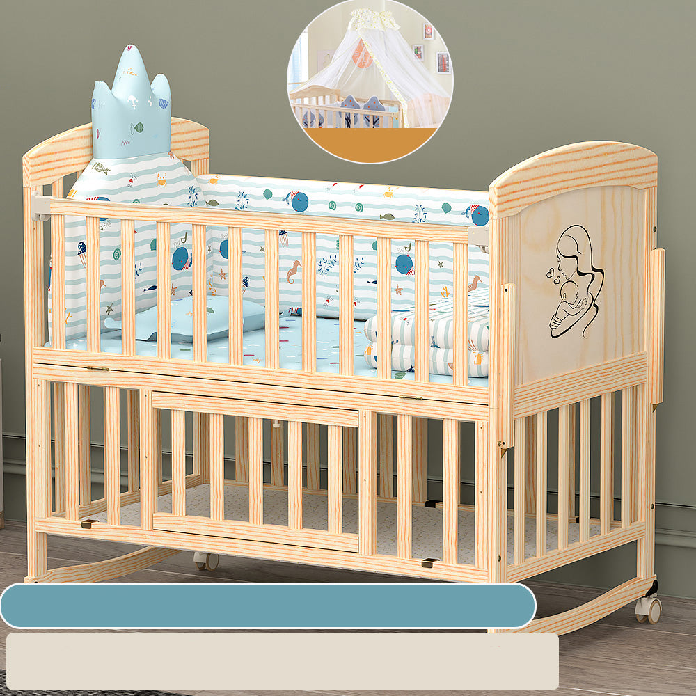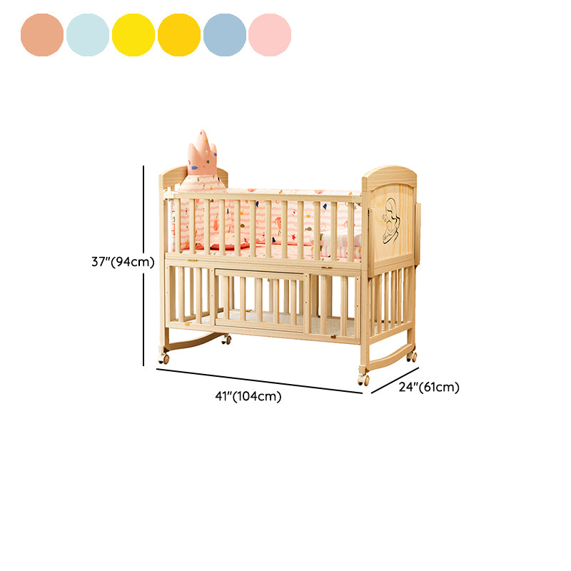 Wooden Modern Nursery Bed Wheels Arched Baby Crib with Storage