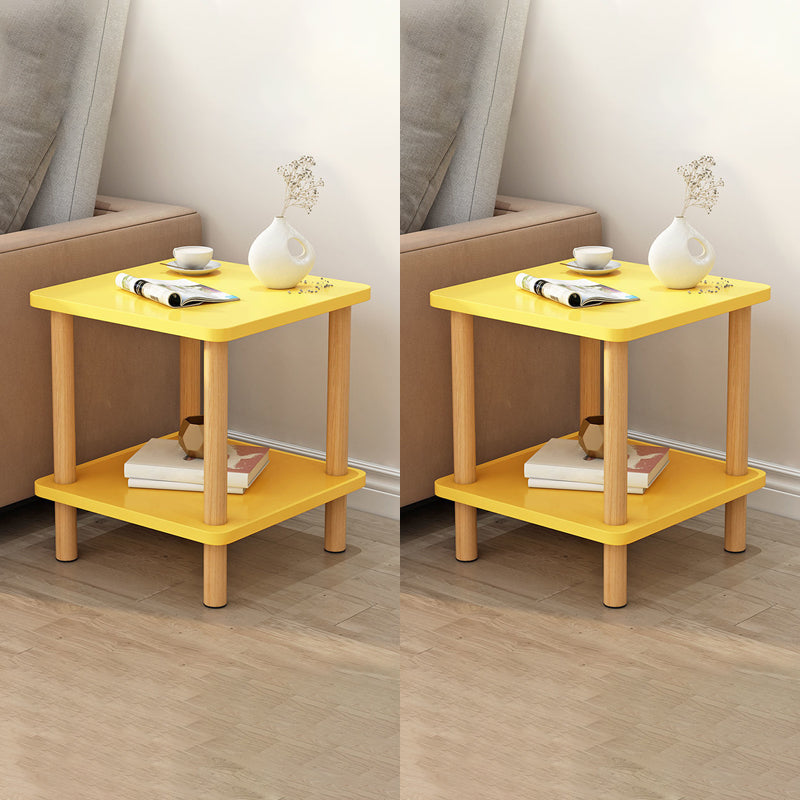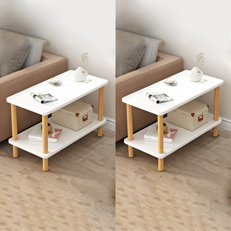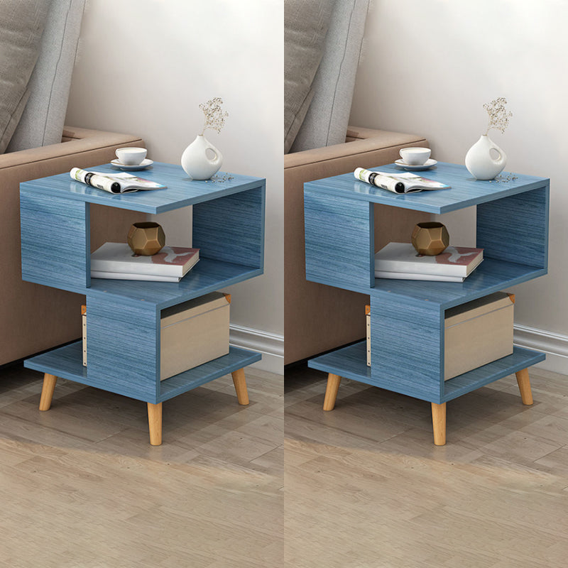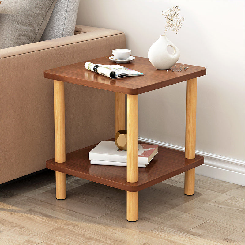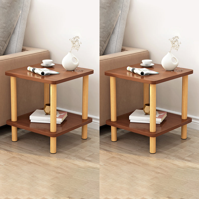 Wooden Side Table Double Tier Modernistic Style Geometric for Living Room
