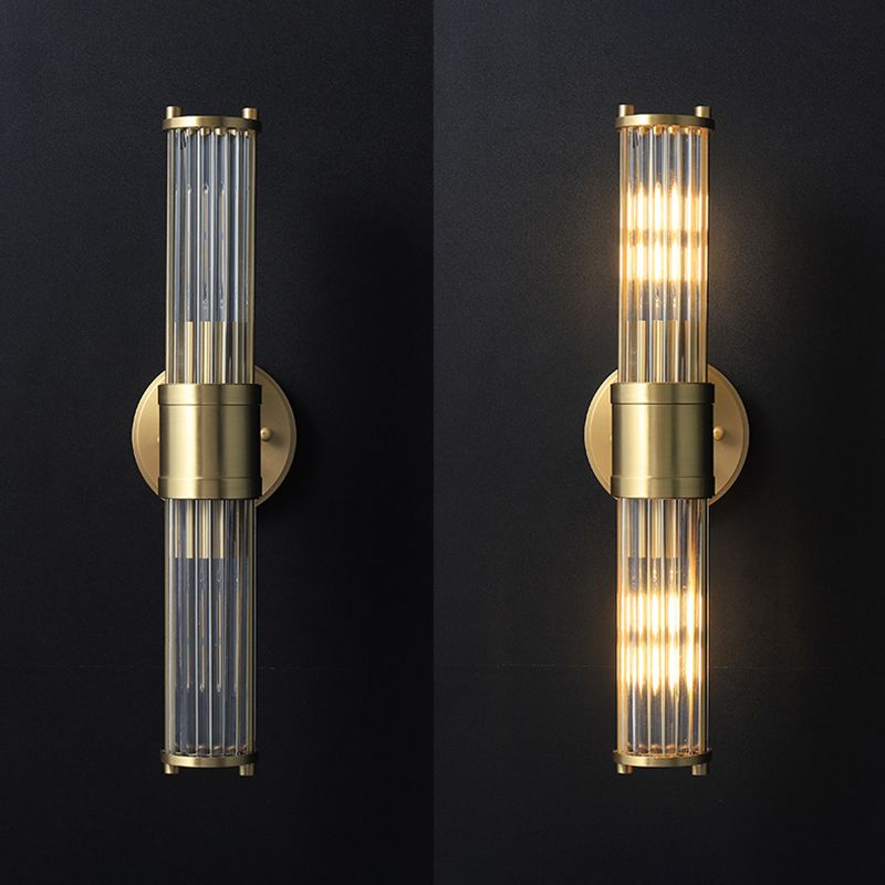 2-Light Cylinder Sconce Light Fixture Modern Glass Wall Light