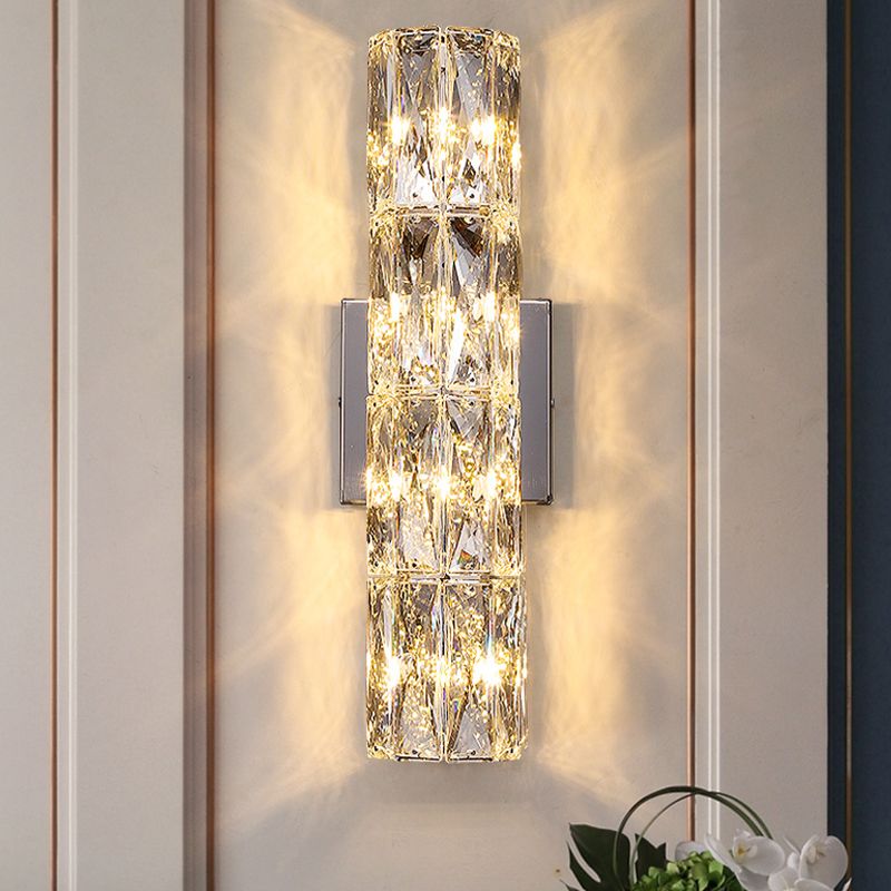 Modern Style Wall Light Cylinder Crystal Sconces in Transparent for Bedroom