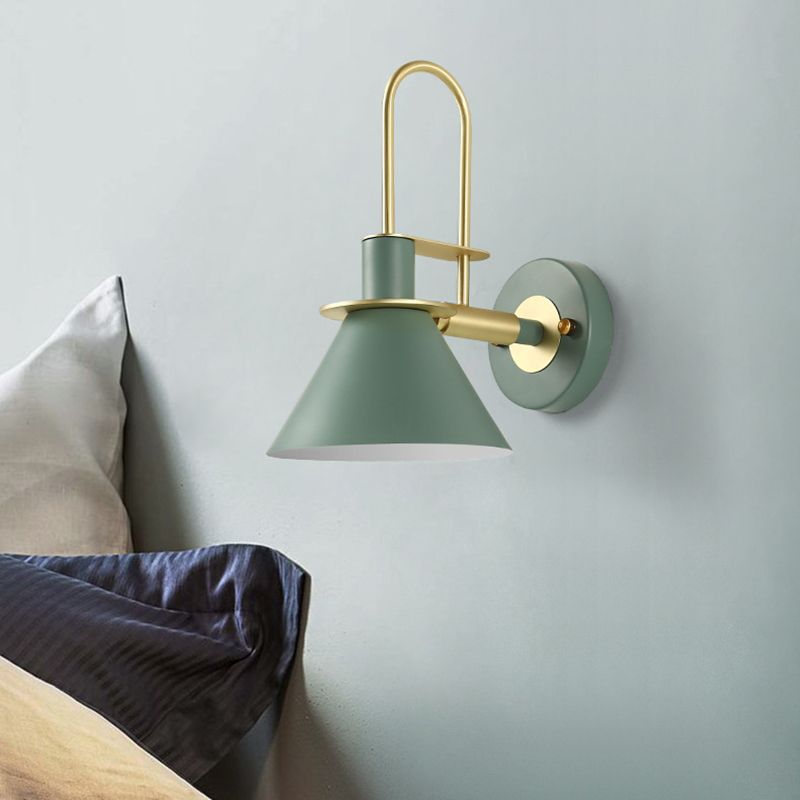 Macaron Cone Shape Wall Sconce Metal 1 Light Sconces for Bedroom