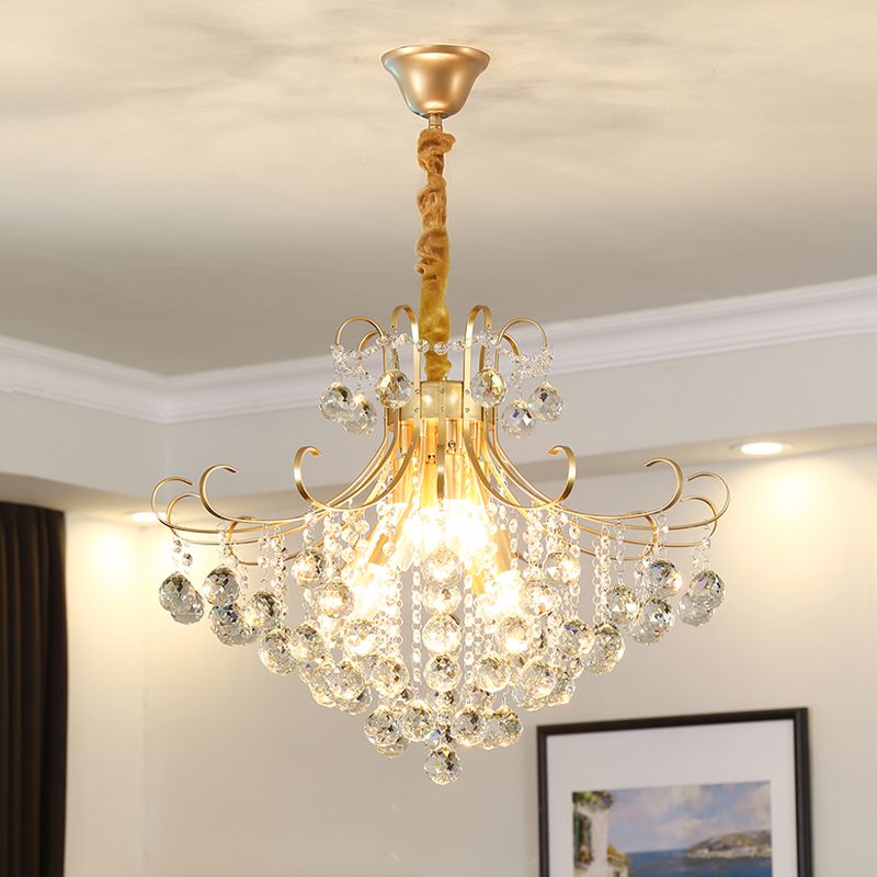 6 lumières Crystal Chandelier Modern Gold Living Salon Plafond Pendu Pendant