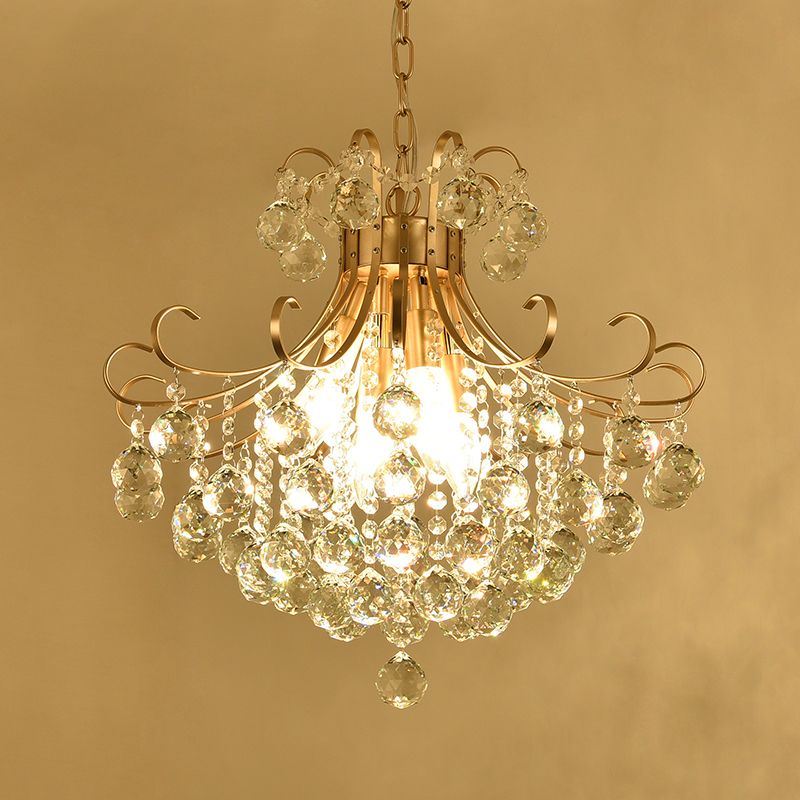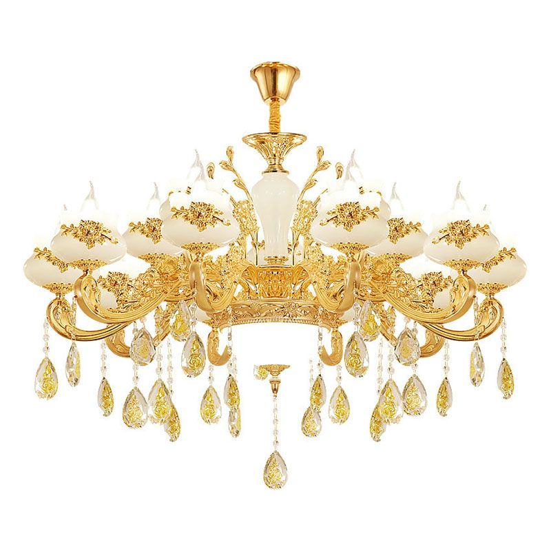 Chandelier traditionnel en forme de plafond beige à cristal opulent pour salle à manger