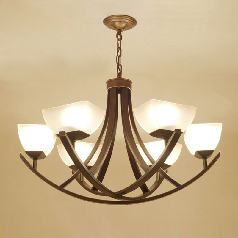 Bell Grosted Glass Chandelier Light Retro Style Living Room Pendant Lightture