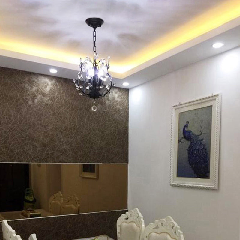 Pendre en forme de tambour noir Modern Crystal Teardrop 6-Bulb Room Room Chandelier