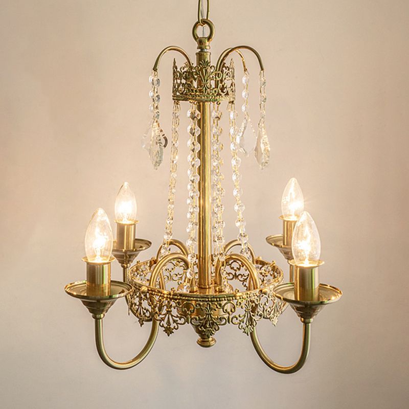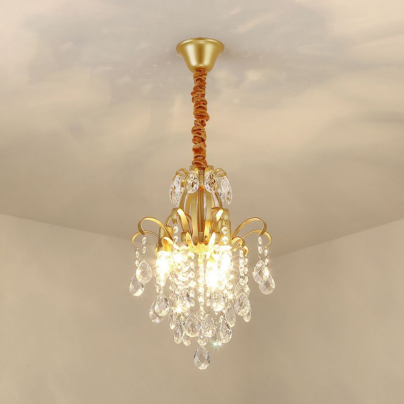 Branches d'aluminium dorées en forme de lustre en cristal transparent gouttes rustiques style pendentif vintage