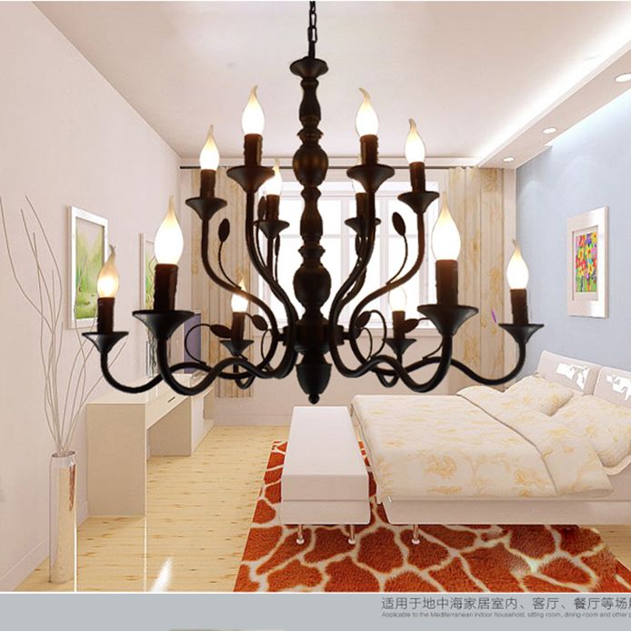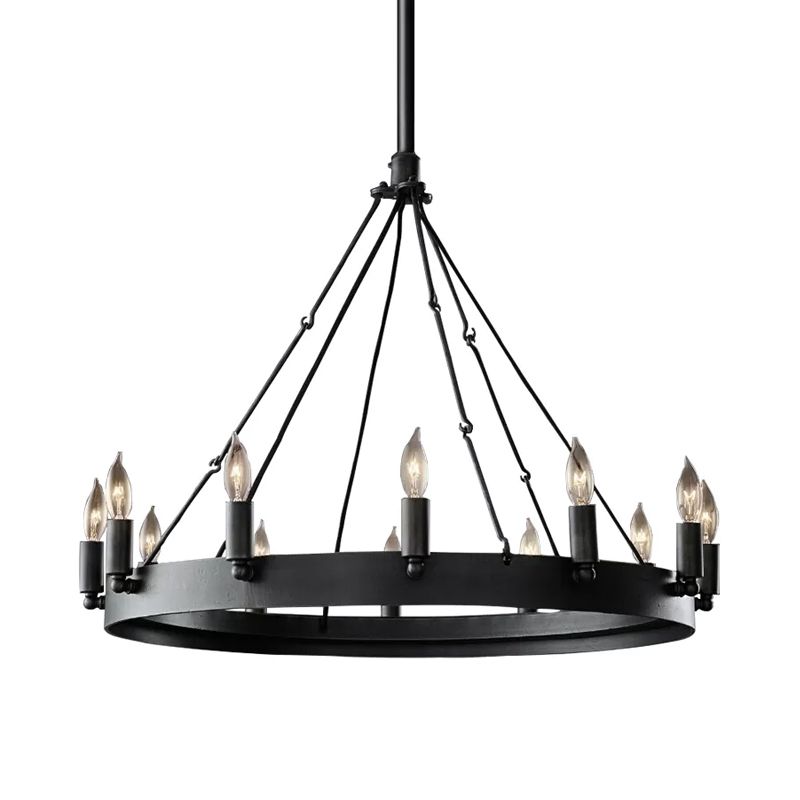 12/18 Light Round Hanging Chandelier Traditional Black Metal Pendant Light avec conception de bougies