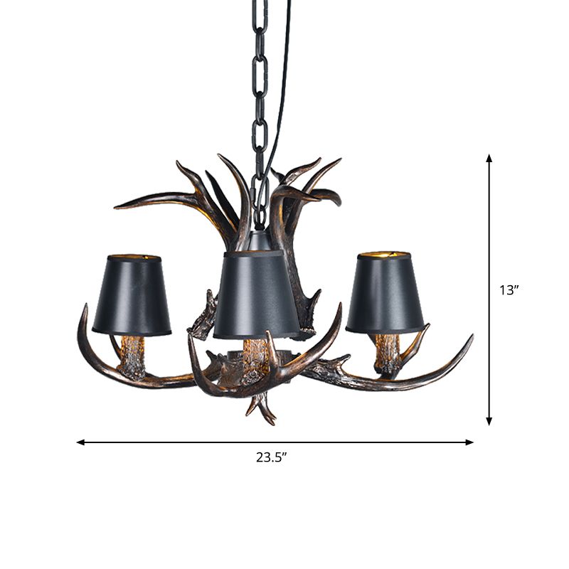 Black 3/6/8 Lumières lustre Lighting Rustic Resin Conical Pendant lampe avec faux bois pour chambre à coucher