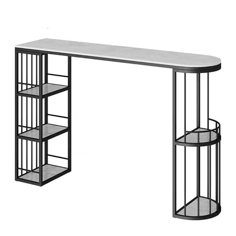 Marble Contemporary Cocktail Bar Table with Storage Rectangle Counter Table