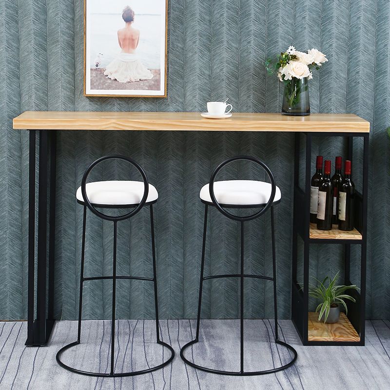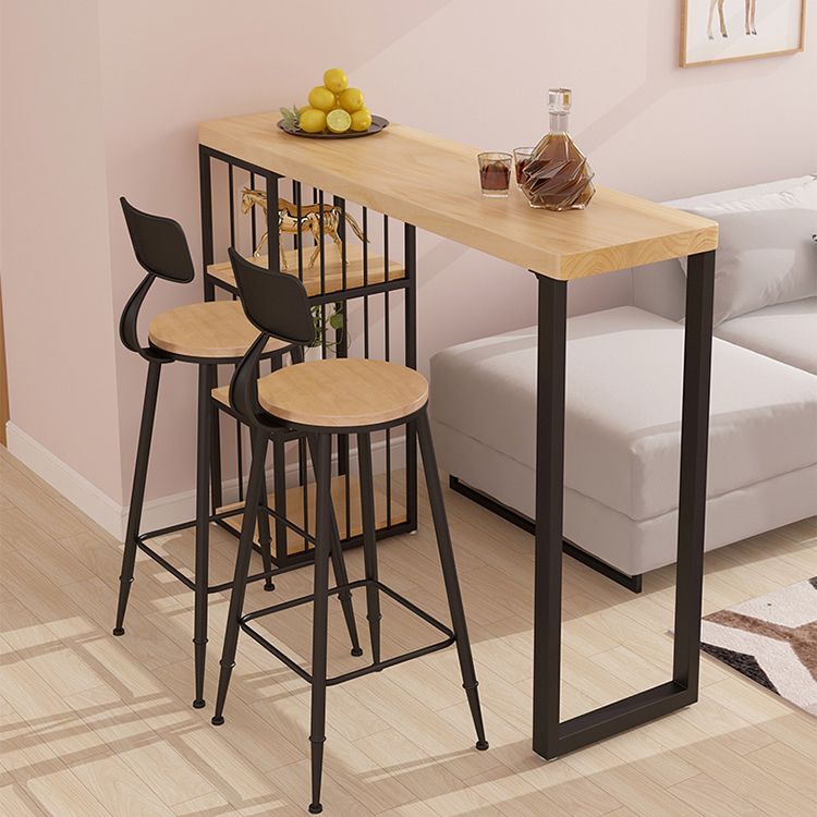 Kitchen Natural Wood Bistro Table Modern Rectangle Cocktail Bar Table with Storage