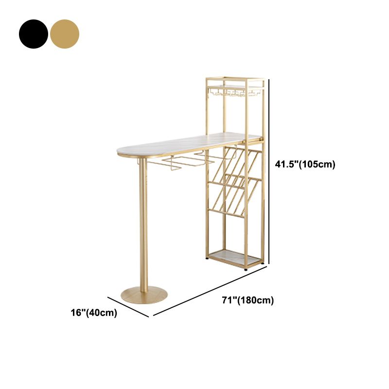Living Room Pub Height Dining Table Stone and Metal Bistro Table with Wine Rack