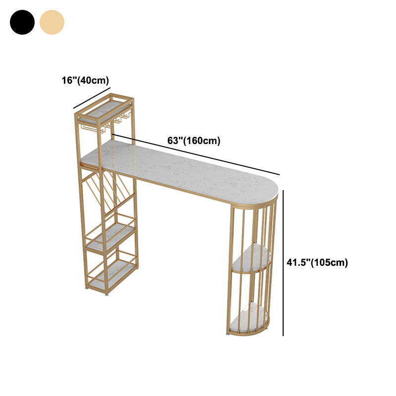 Glam Style Stone Bar Table Semicircle Top Pub Table with Cabinet for Dining Room
