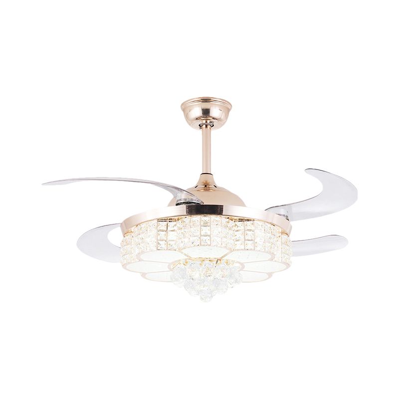 42 "w chrome rond suspendu lampe à fans minimaliste minimaliste en cristal luminaire semi-luxueux avec 4 lames