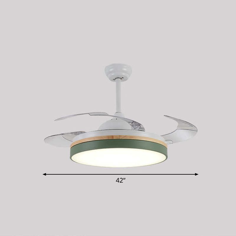 Macaron Style Conical Hanging Fan Light Metal Kids Child Room 26 "LED LED LED PLADIER LED LED, 3 lames