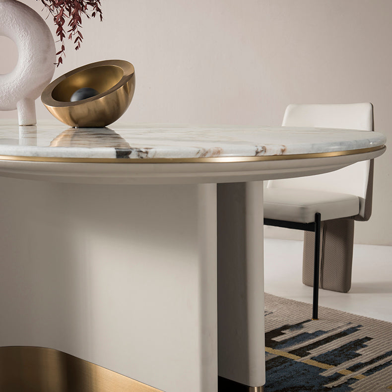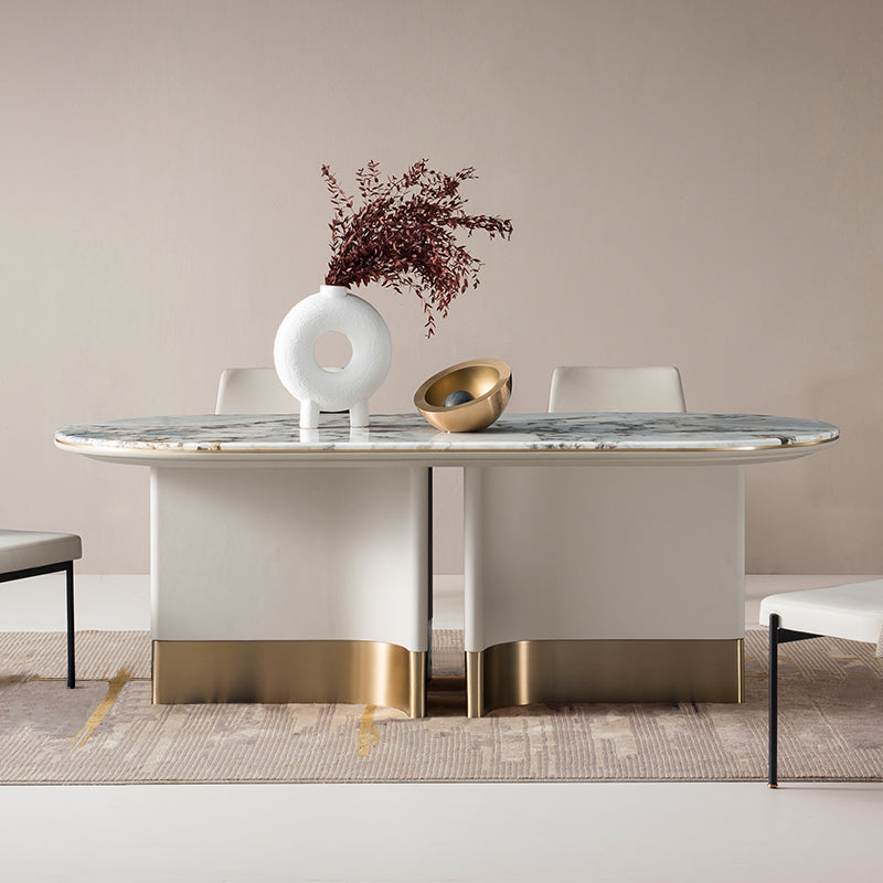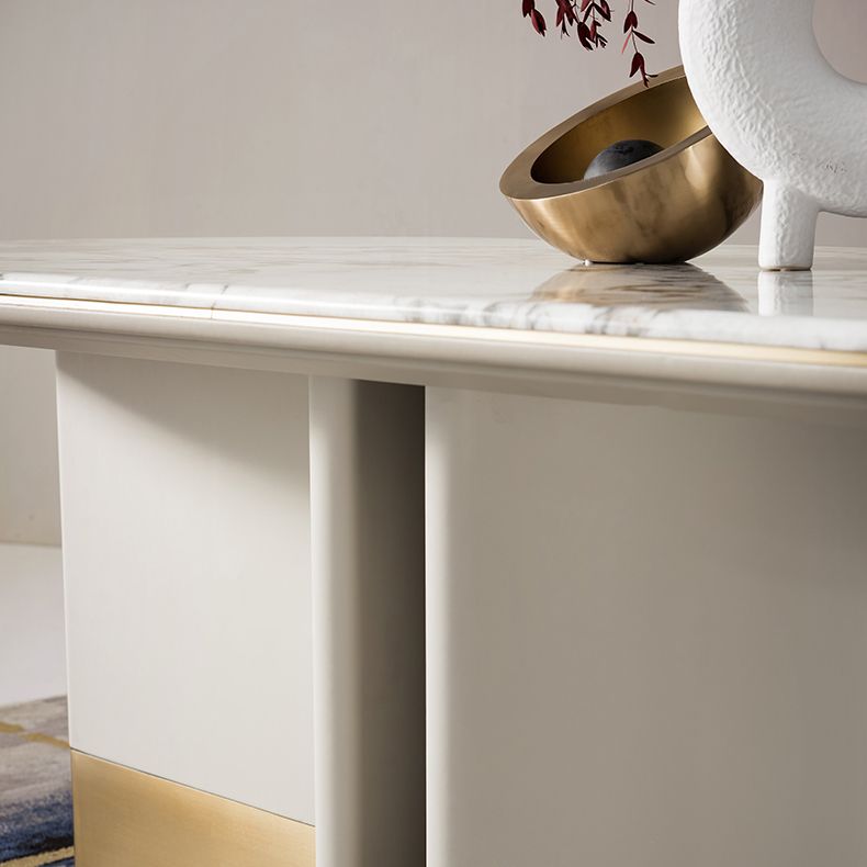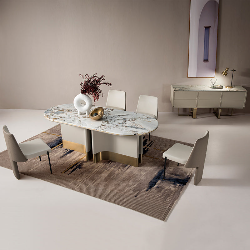 1/5 Pieces Modern Oval Stone Stop White Dining Set for Home Use