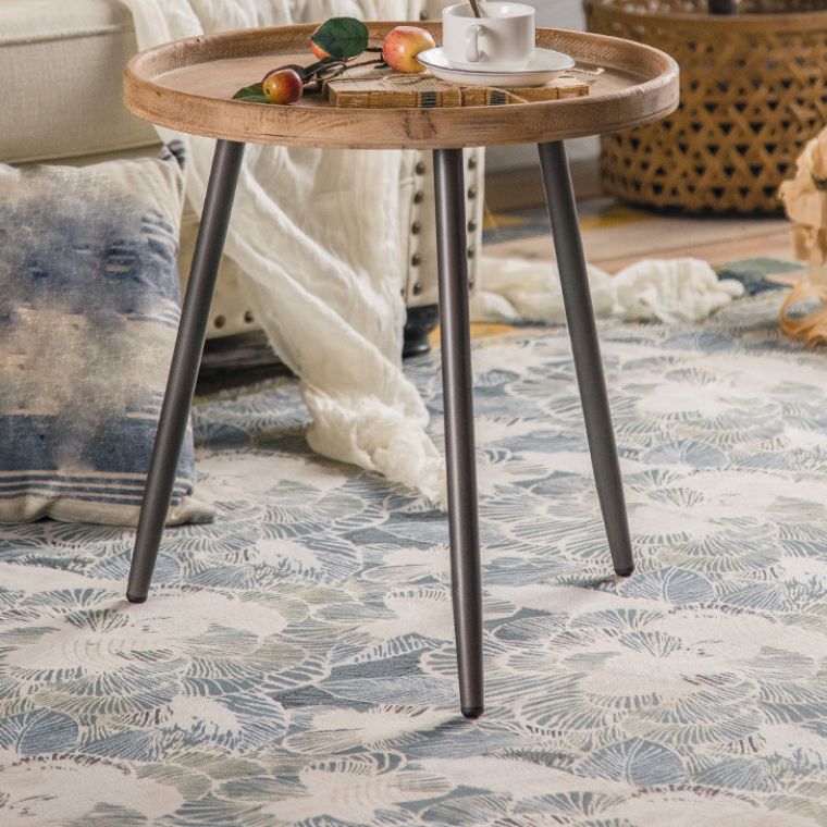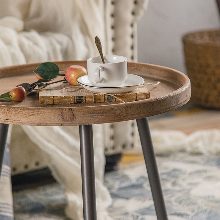 19.68" Tall Solid Wood Round Tray Top End Table Iron 3 Legs Side Table