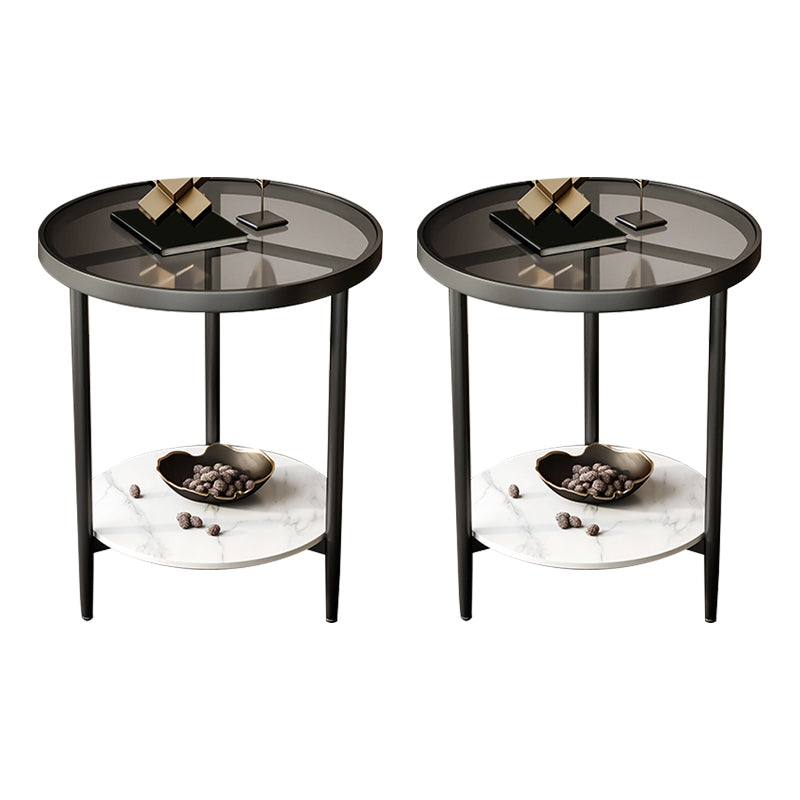 19.69" W x 19.69" D x 22.83" H Side End Table Glass Round Side Table with Shelf