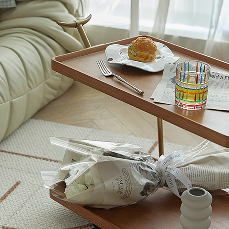 20.47" Tall Tray Top Side Accent Table Solid Wood End Slide Table