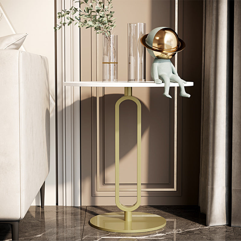 21.65" Tall Pedestal Side Table Mid-Century Modern Round Stone Top End Table