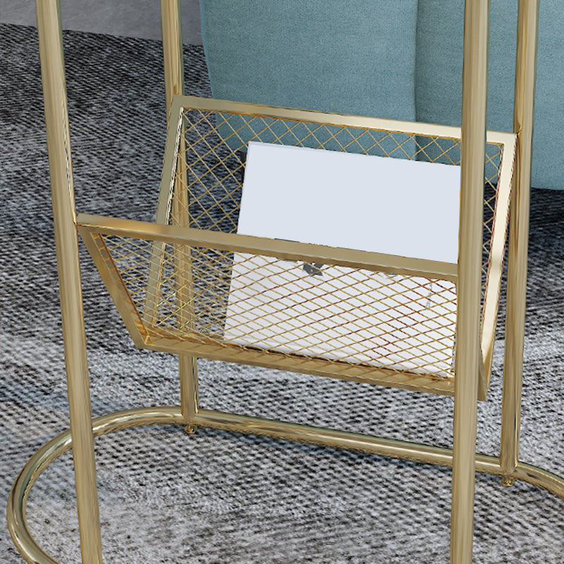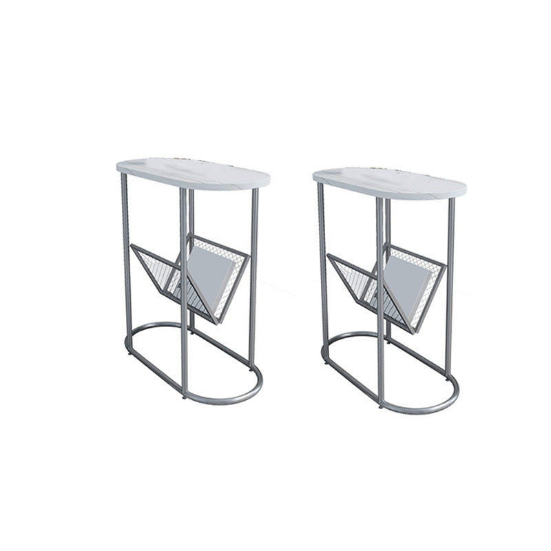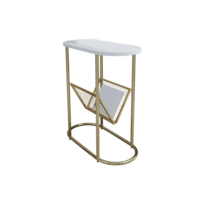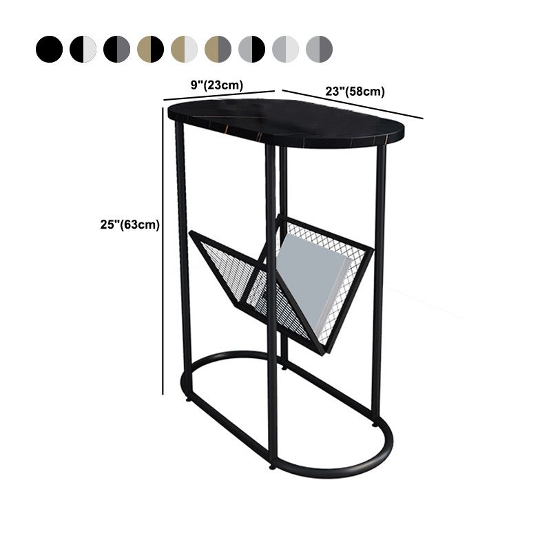 24.8" Tall Iron Frame Base End Table Oval Slate Top Side Table with Magazine Holder