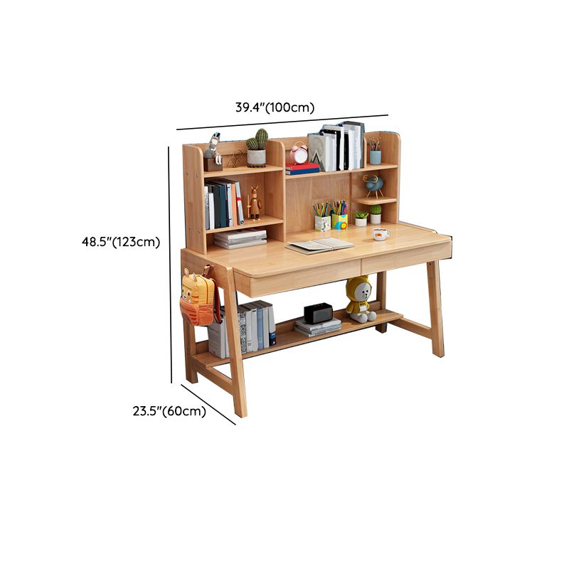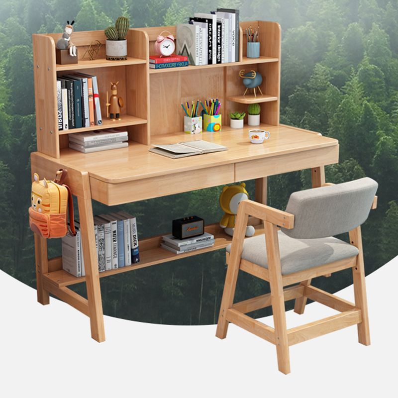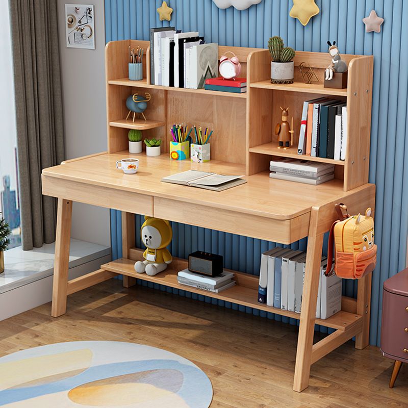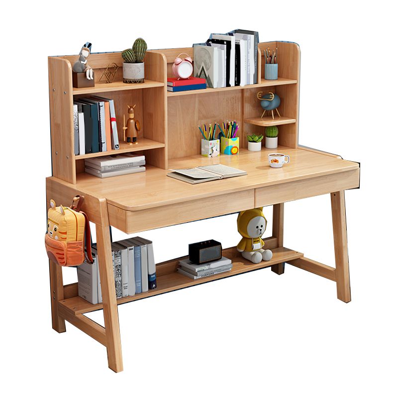Adjustable Children's Desk in Natural with 2 Drawers and Shelves