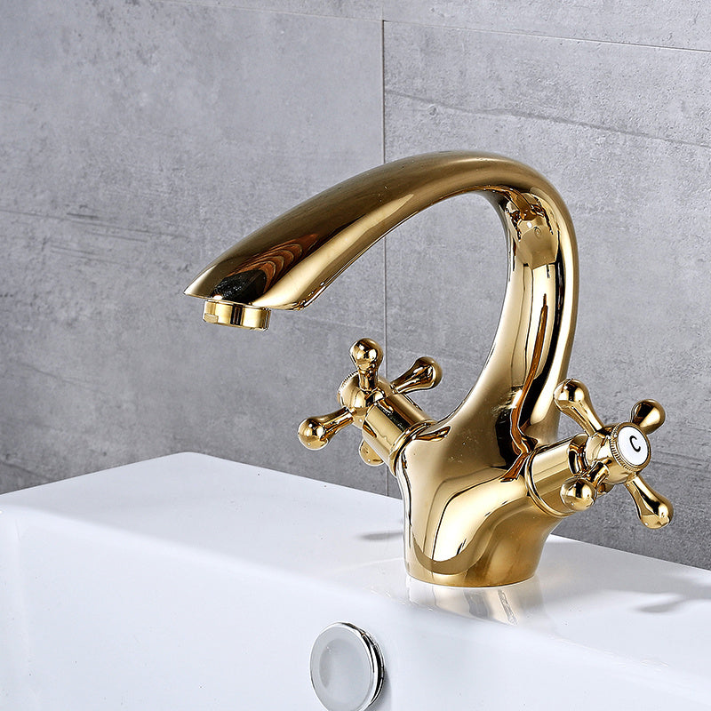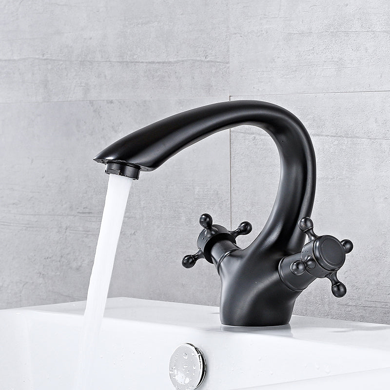 Bathroom Vessel Faucet Double Cross Handle Low Arc Industrial Sink Faucet