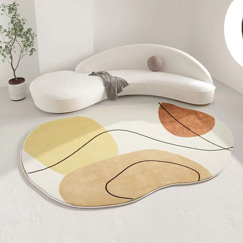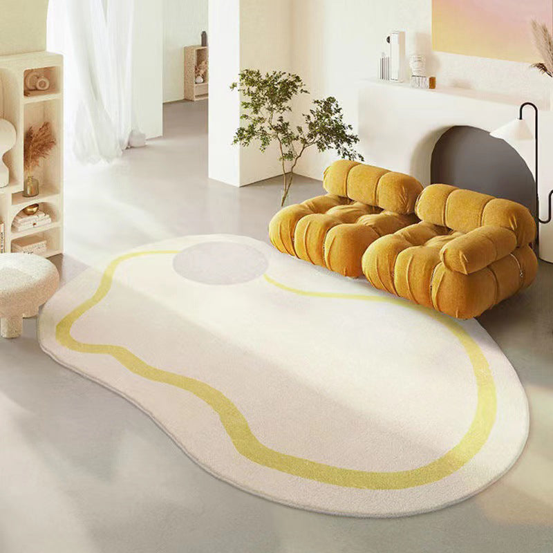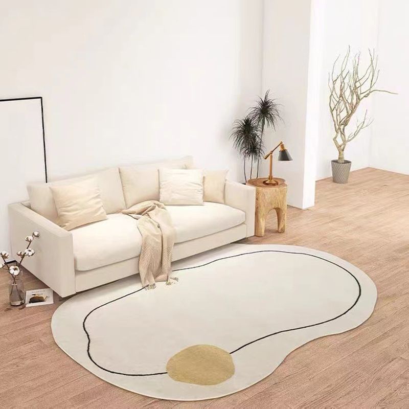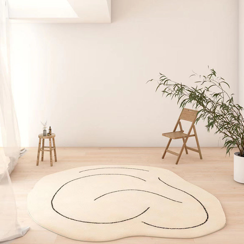 Beige Line Carpet Polyester Simple Carpet Stain Resistant Carpet for Home Decor