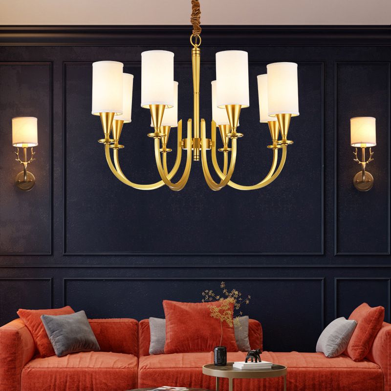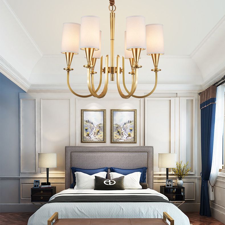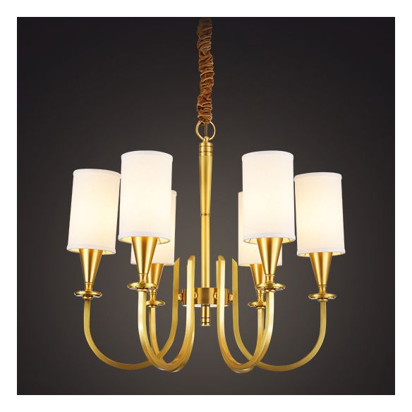 Brass American Traditional Style Chandelier Cylindrical Fabric Shade Dining Room Lighting Ayémordage avec chaîne de suspension réglable de 19,6 "