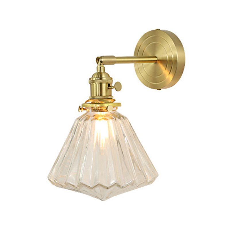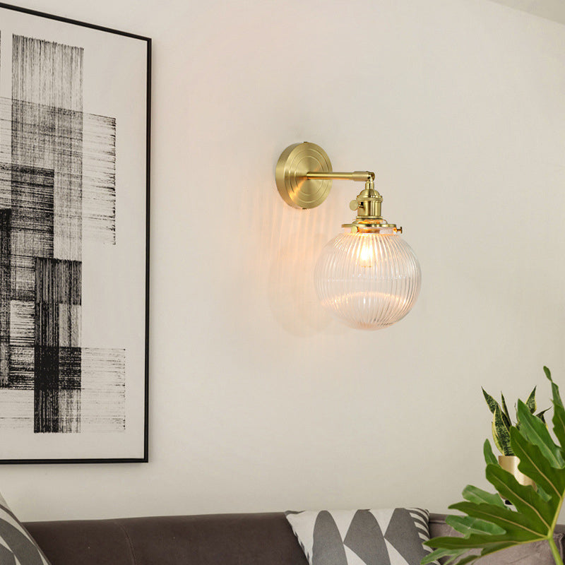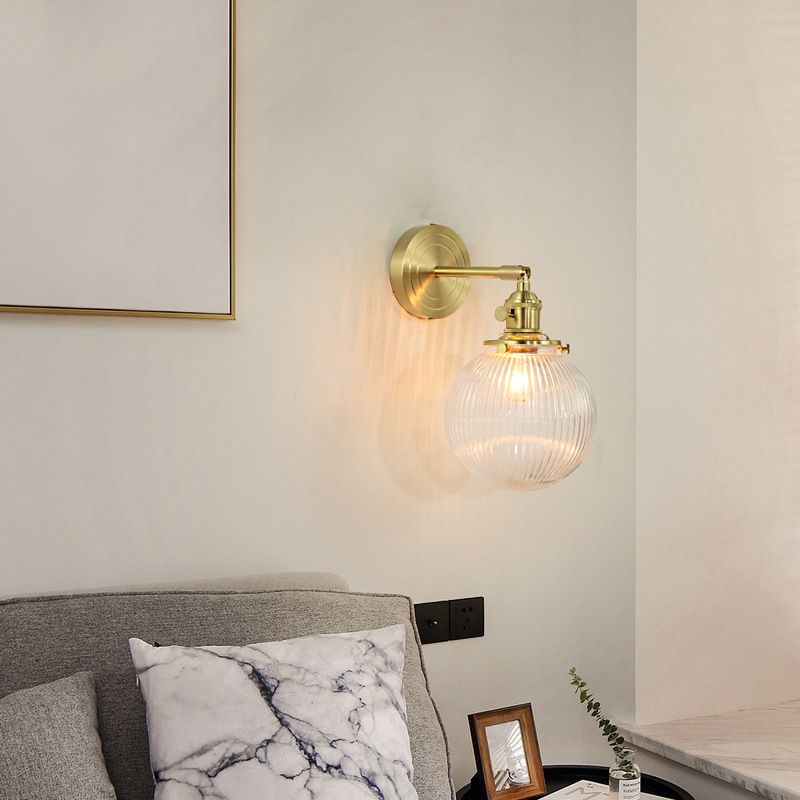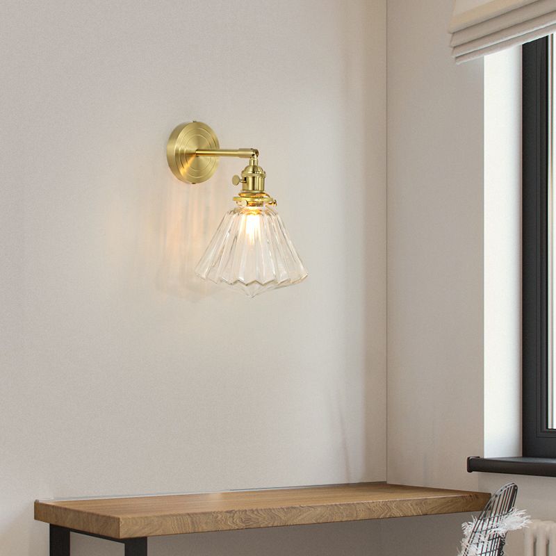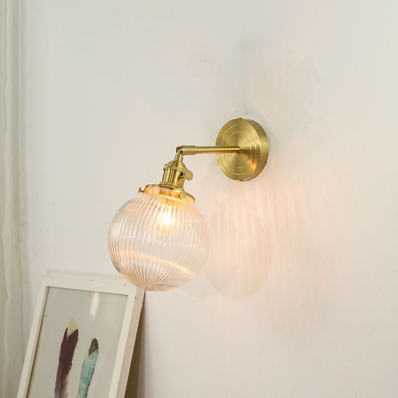 Brass Sconce Modern Style Wall Light Clear Glass 1 Light Wall Sconce for Bathroom