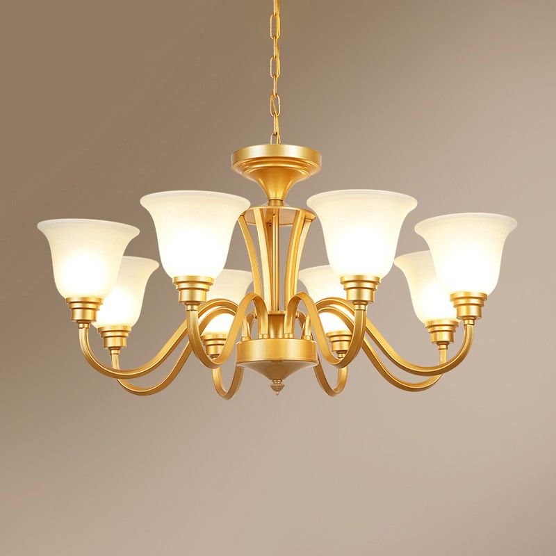 Chandelier suspendu en verre givré traditionnel en verre givré de plafond évasé pour le salon
