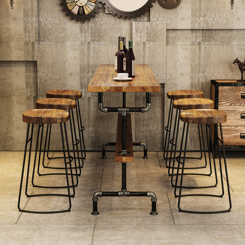 Coffee Shop Solid Wood Counter-height Pub Table Rectangle Footrest Bar Dining Table
