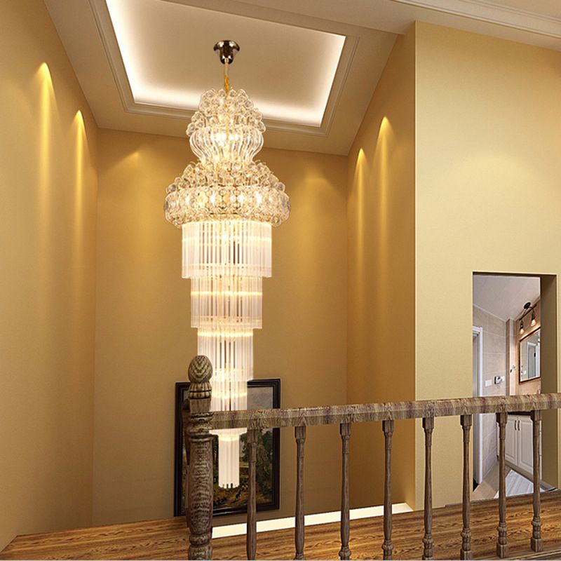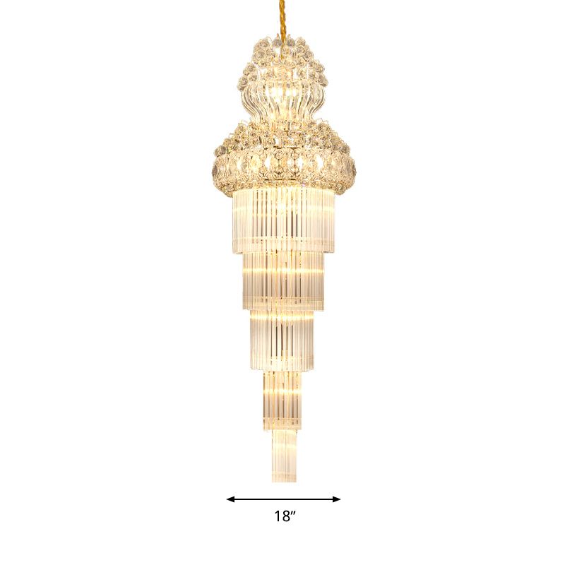 Cône d'escalier en lustre de lustre Light Light simple Clear Crystal Tod 12 Heads Gold Suspension Lampe