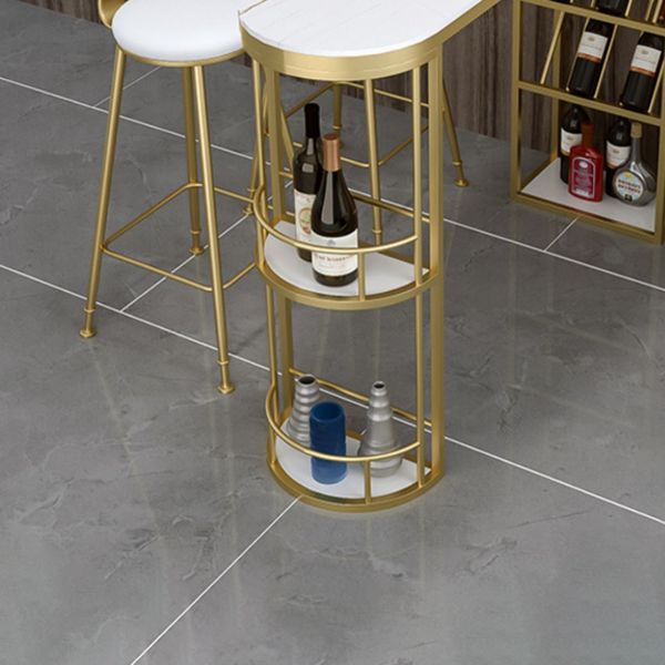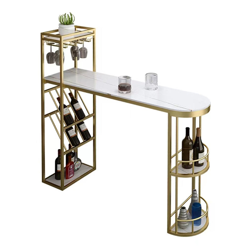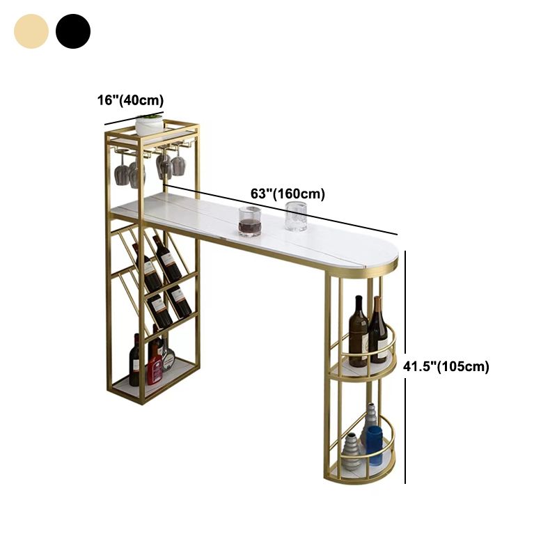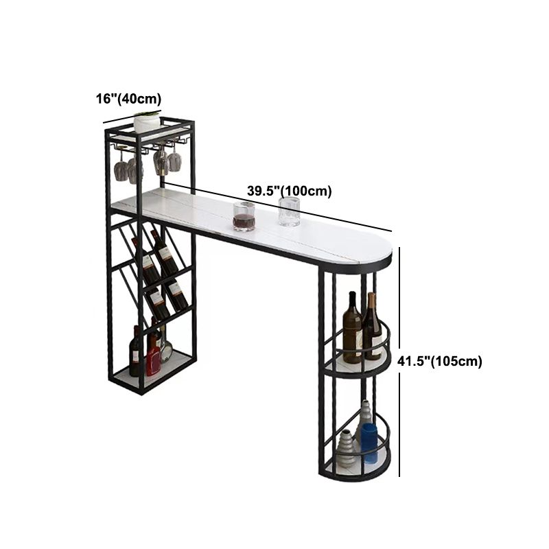 Contemporary Bistro Accent Dining Table Stone and Metal Bar Table with Wine Rack