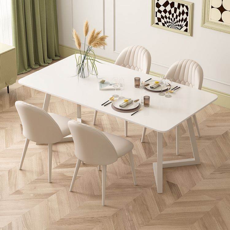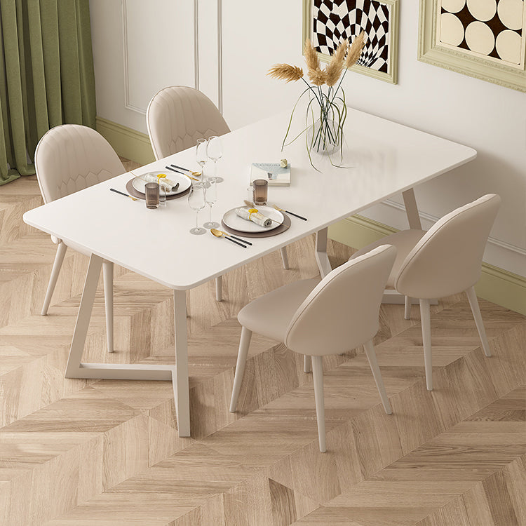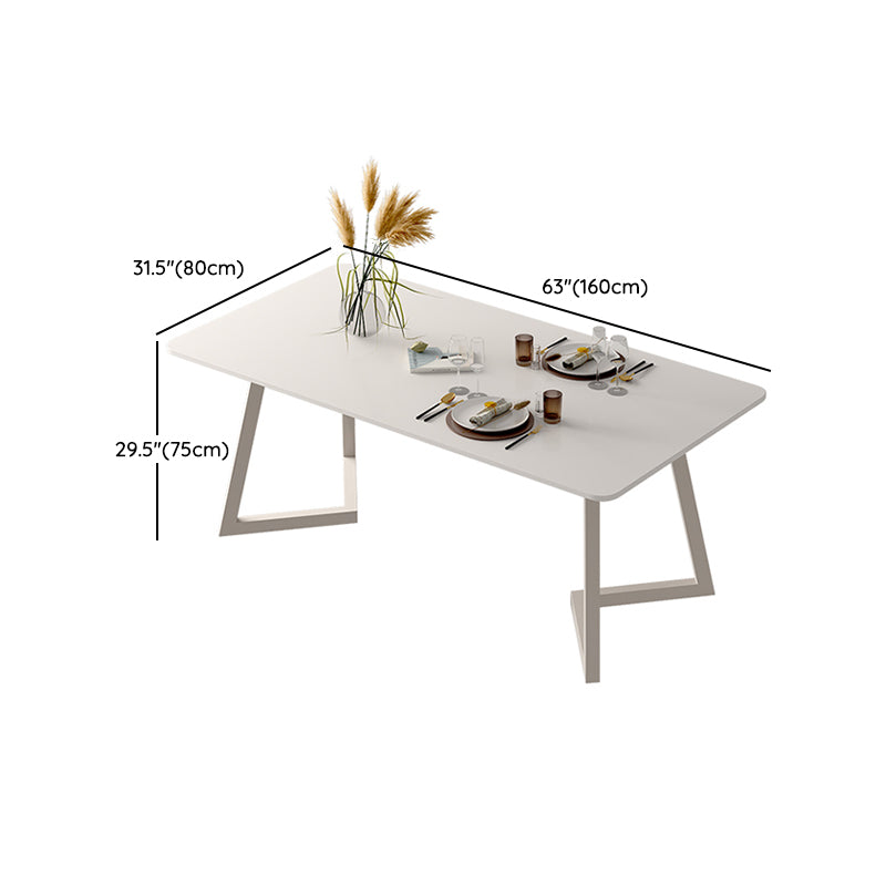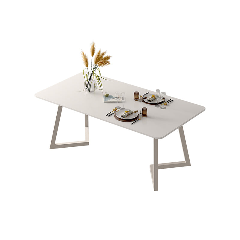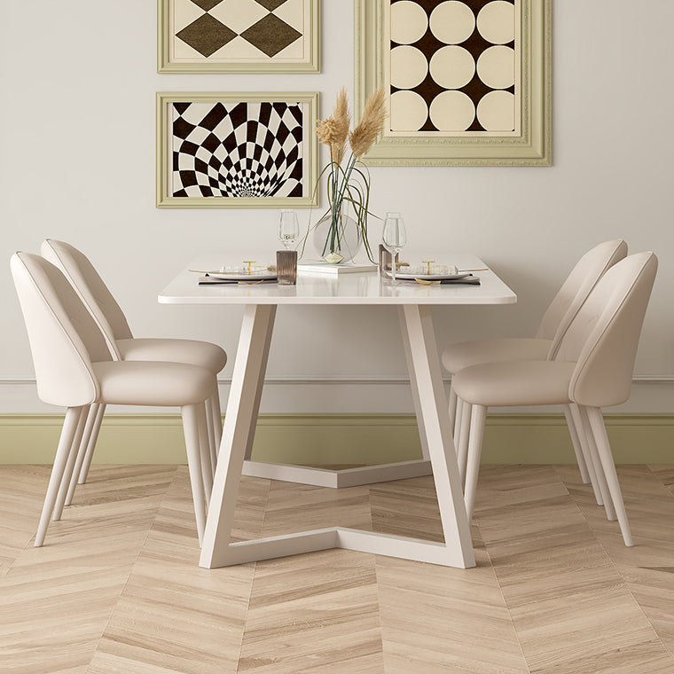 Contemporary Sintered Stone Top Metal Base Dining Table with Chairs in White